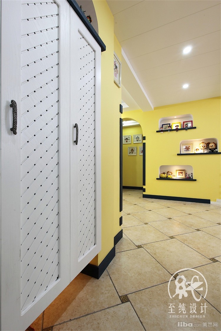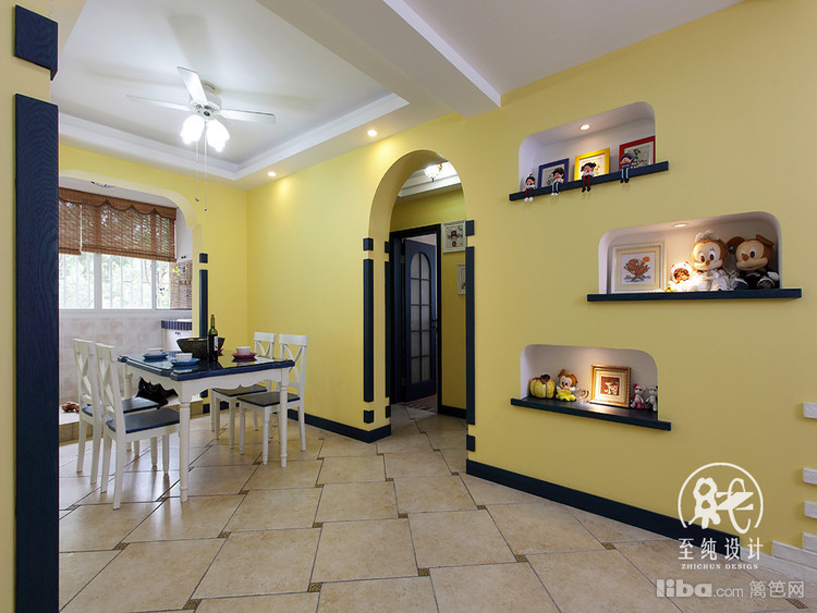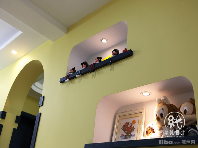 壁龛:此墙为端景墙,原墙面单一破旧,为呼应风格及活跃墙面,设计师特以壁龛形式对墙面进行装饰,似“蒙奇奇”工艺品更增添了墙面的生气。
