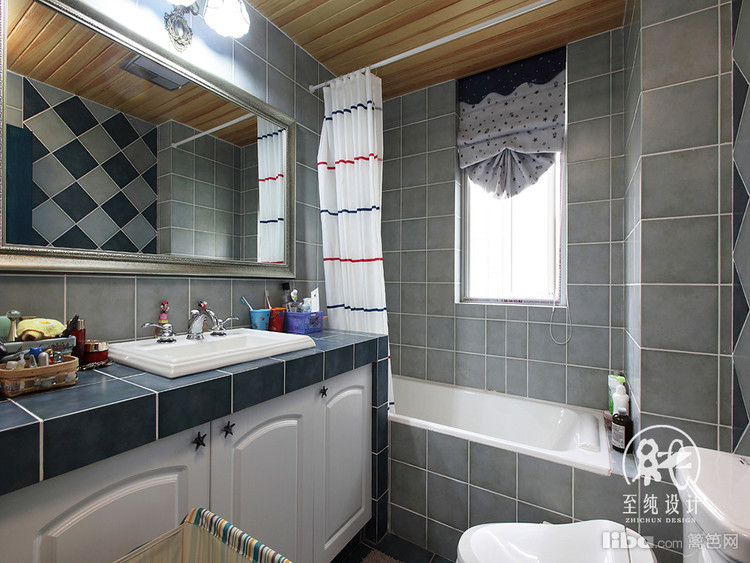 卫生间:现浇的洗手台外形大气,铺贴的瓷砖使卫生间交相呼应
