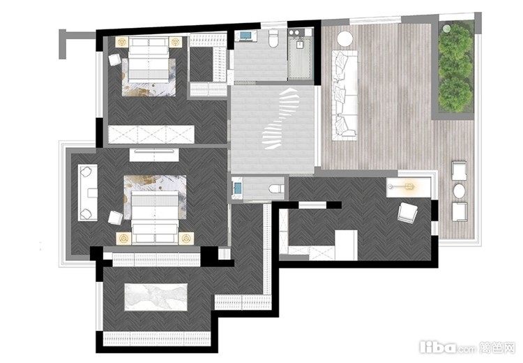 把纵深缩小,原有的比较窄的次卧当做主卧套内的衣帽间,满足男女屋主对衣帽收纳柜的强烈需求。