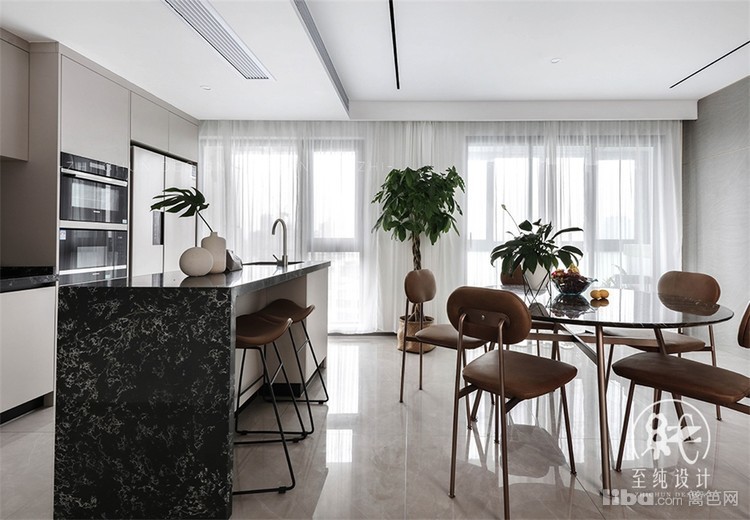 中西厨分离式的西厨加上餐厅的形式塑造更加开放、互动十足的餐厨空间。