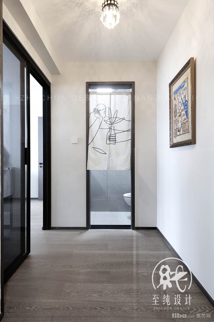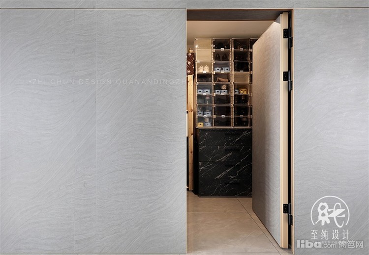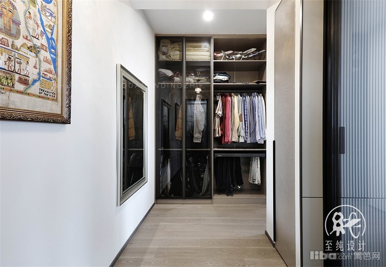 与中厨并成一线做隐藏式独立衣物储物间,解决日常次新衣及收纳需求。