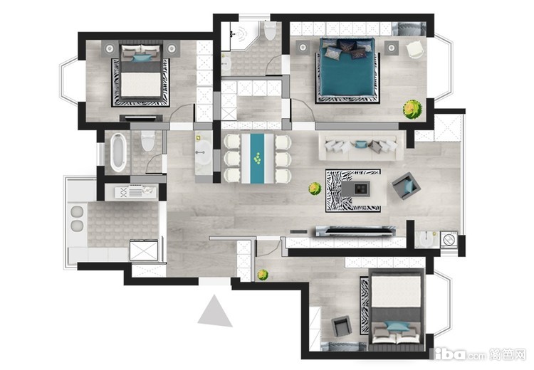 1. 进门鞋柜区域不明确;2. 过道餐厅小,且把进门堵了;3. 过道宽度2m,没好好利用,过于浪费;