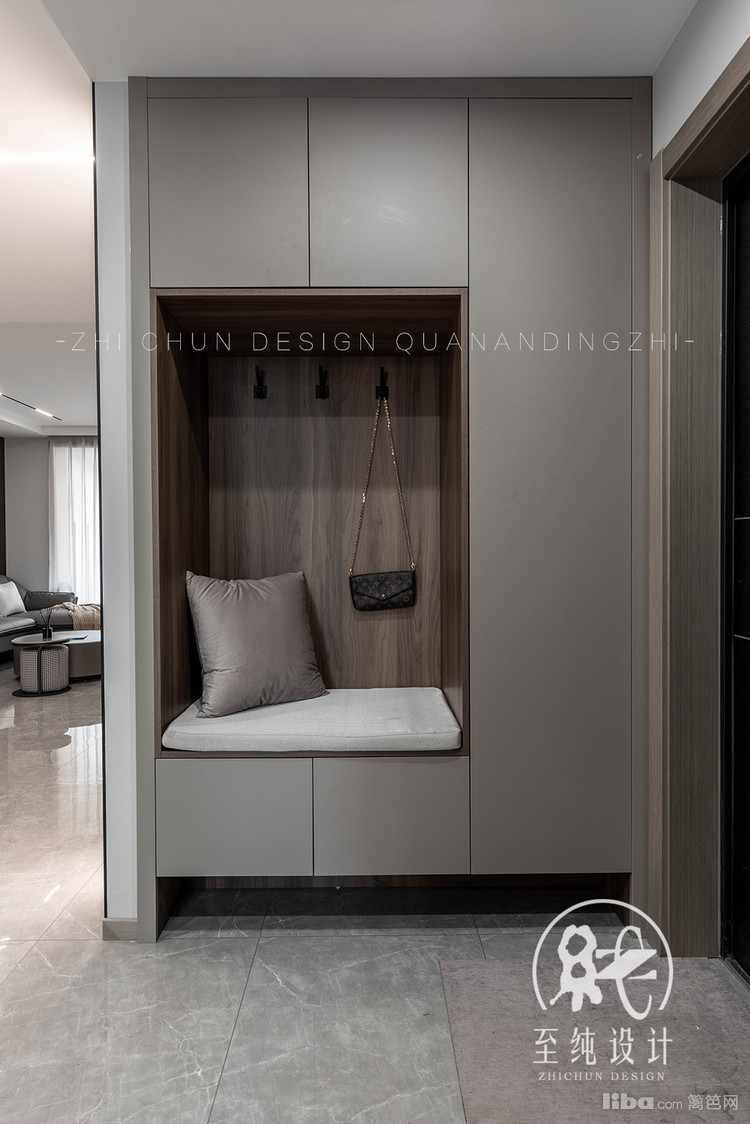 进门新建墙体,增设玄关衣帽柜,解决日常进出次新衣收纳问题;同时,也避免入户对冲餐厅的尴尬局面;
