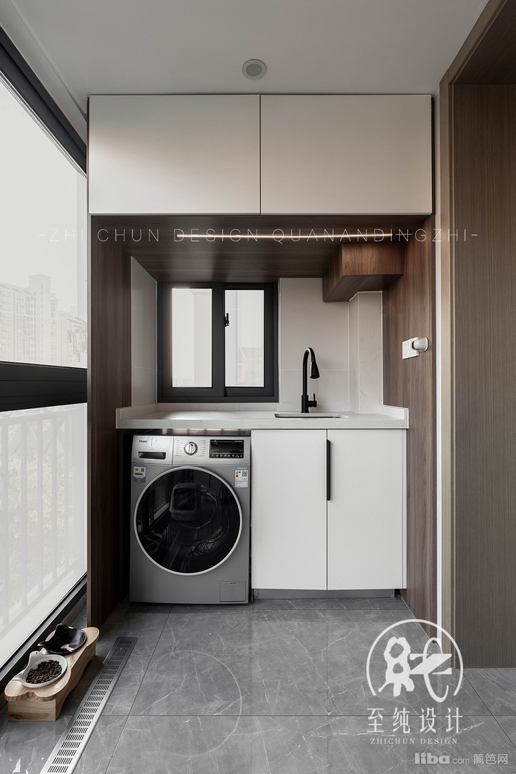 阳台和客厅没有做任何的隔断,完全打通,更具有视觉延伸感。日常南阳台作为洗晒区域,也是家里小主“富贵儿”猫溜达活动的区域,俨然已成它专属地盘。