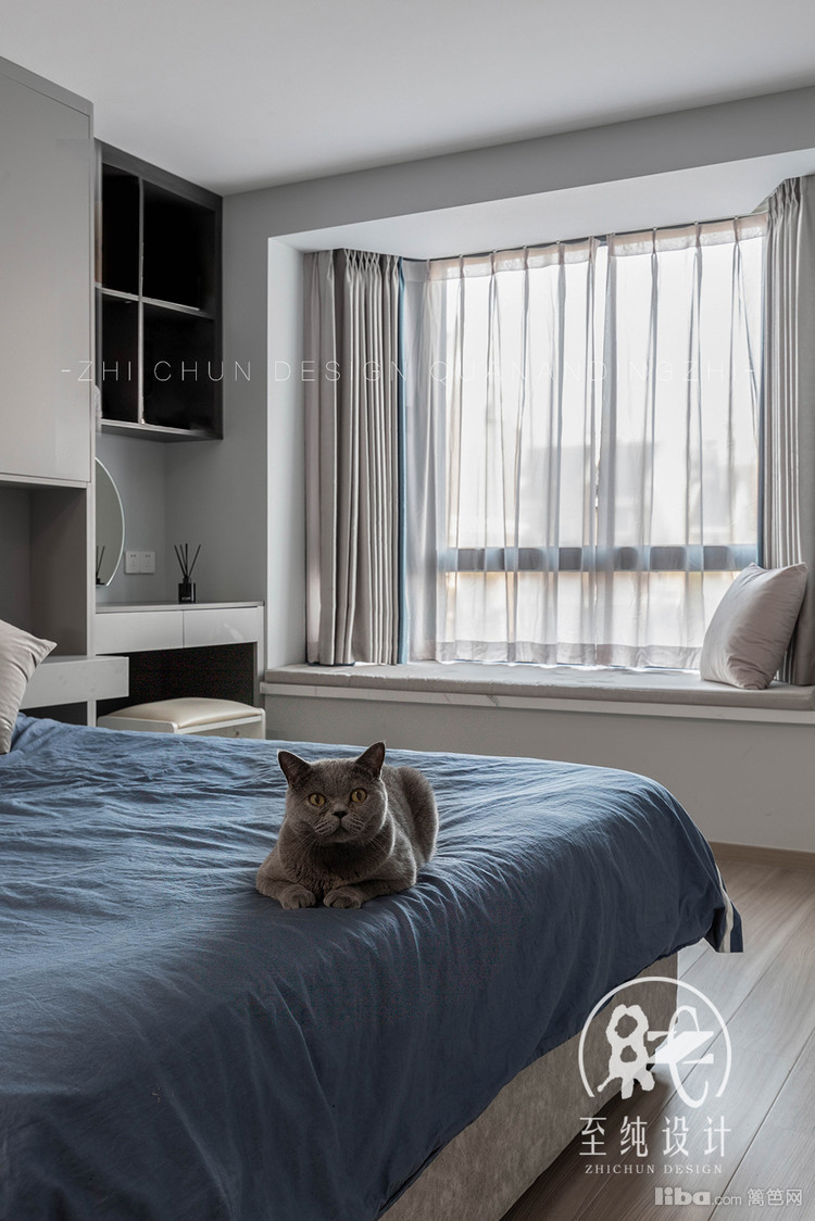 飘窗一侧自然光线十分充足,梳妆台前,画着精致的妆容,开启美好的一天;