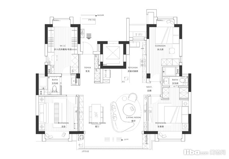 五口之家,三代同堂,尊重屋主的意见,让长辈更能舒适的享受生活,将原有的主卧套间调整为父母房