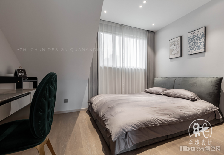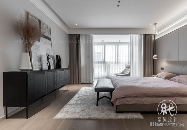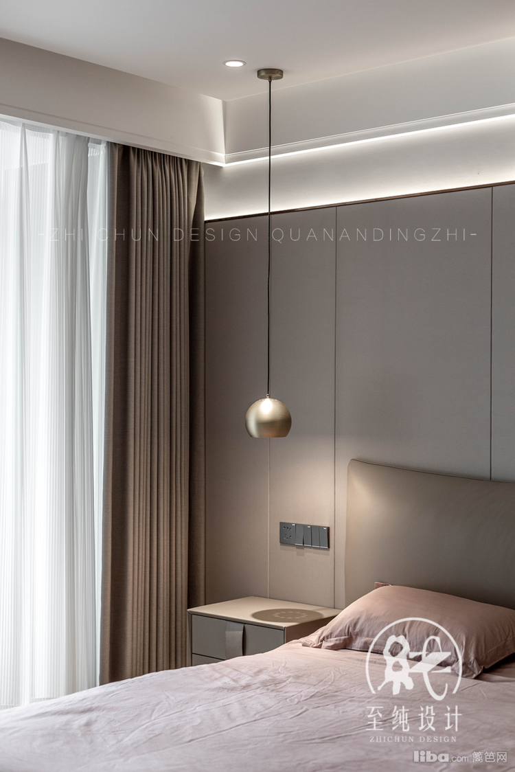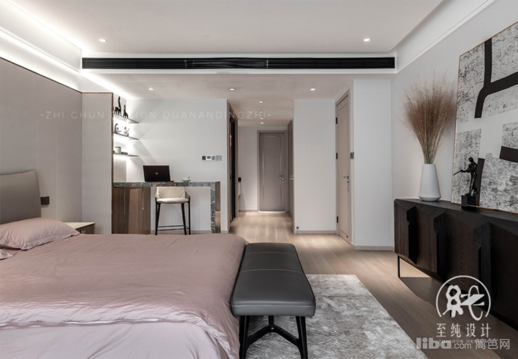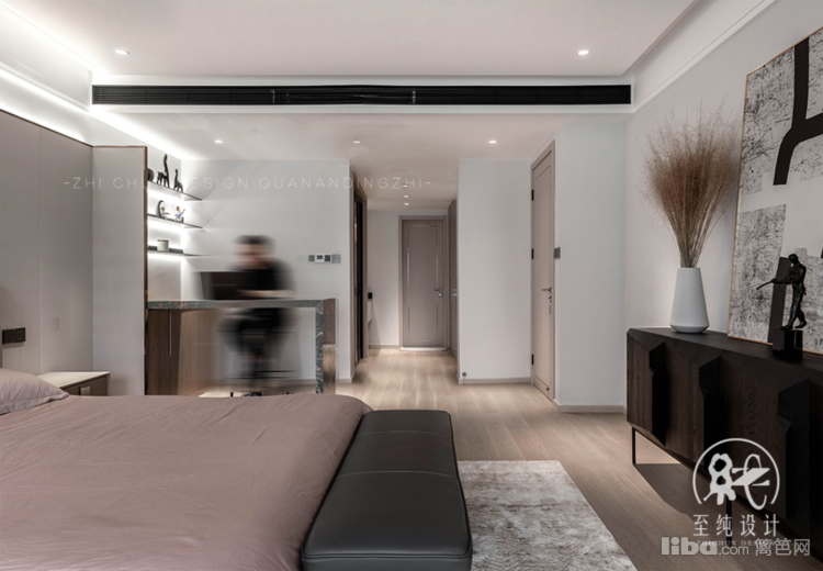 主卧以套间形式展开,设计手法上无过多附加元素,近乎苛求地做减法,去主灯、少赘饰