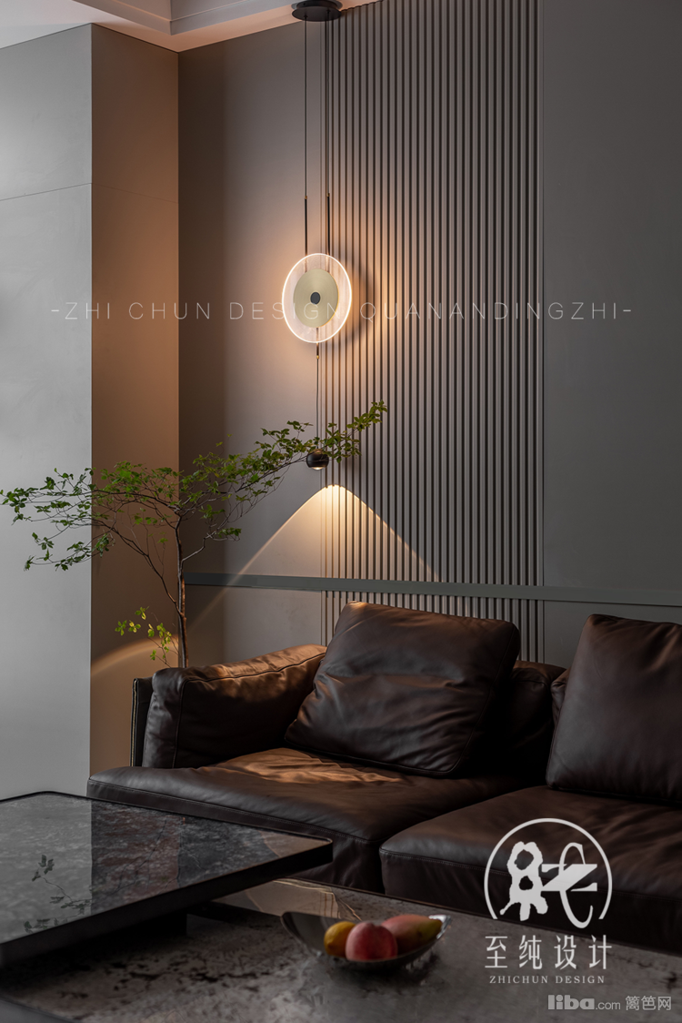 金属壁灯的简洁语言,与深色背景格栅线条互映,恰生出丰富的格调体验。