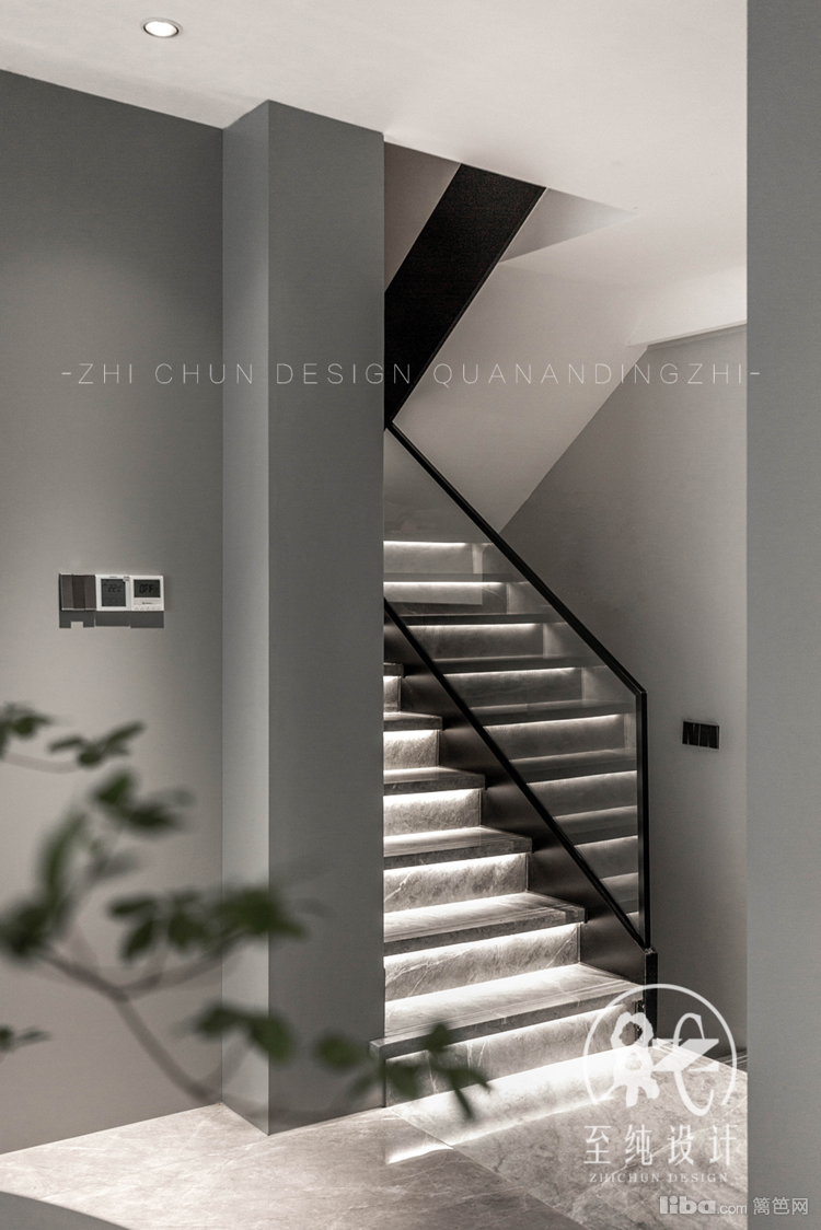 原户型无玄关,通过调整错层方位在不改动楼梯情况下增设,并以玄关为整个家居中轴线,动线调整南北方向。