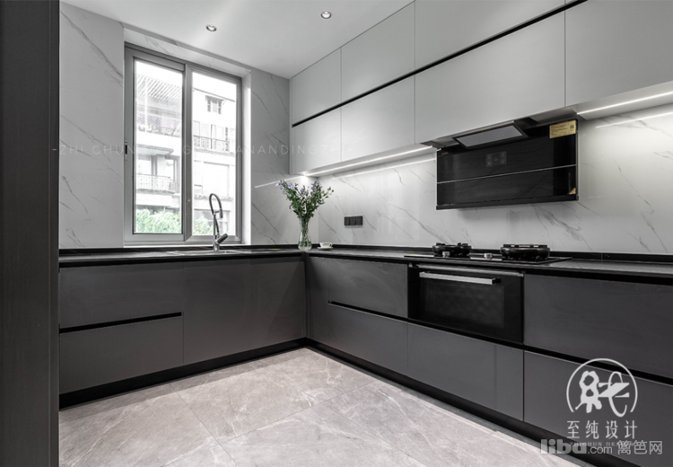 挥手感应的抽油烟机风力十足,油烟不是问题。L形厨房、一字型上柜满吊