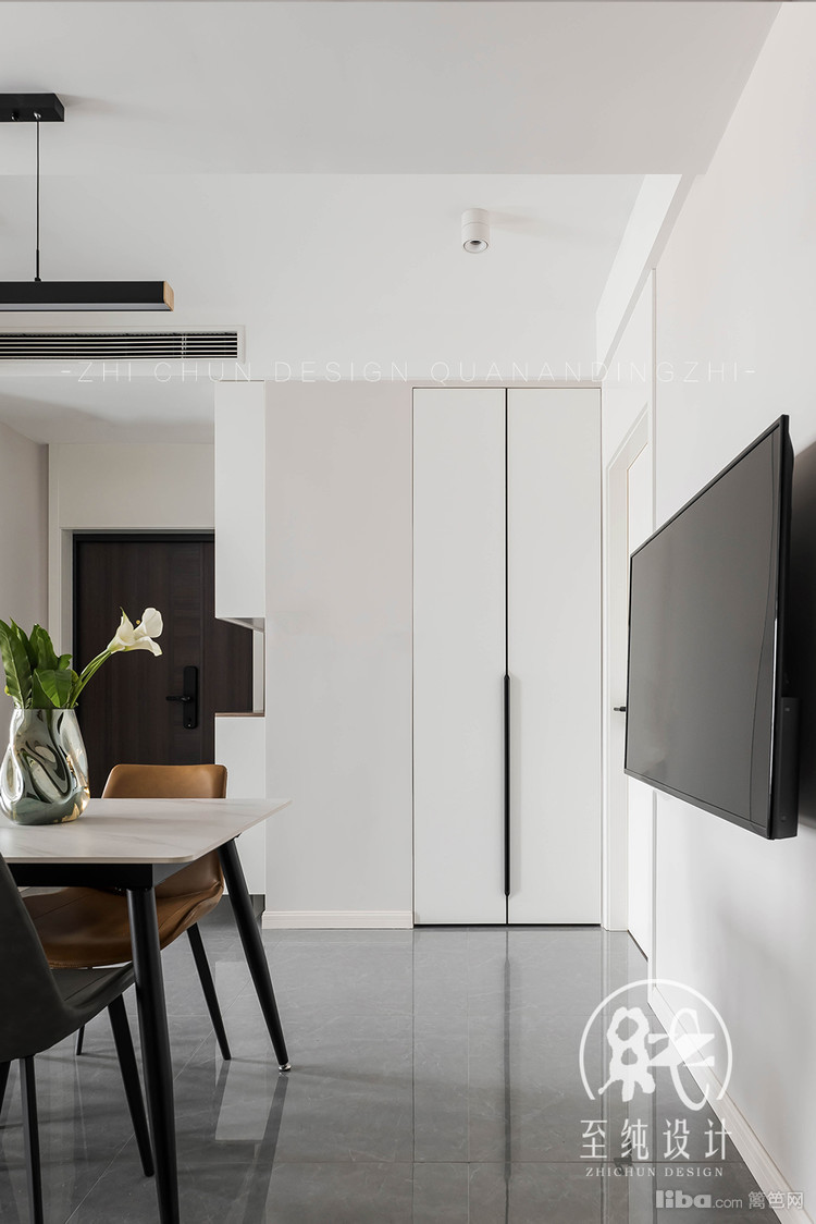 原户型入户即是门厅,日常也是做过道餐厅使用。重新布局后,门厅移位,增设入户玄关