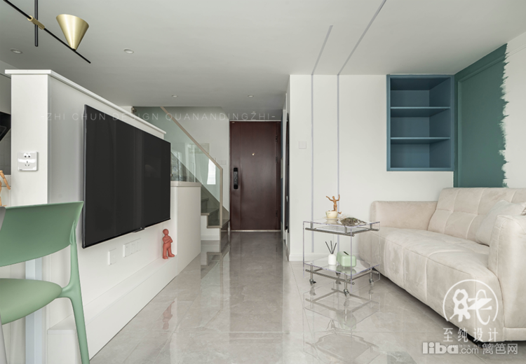 卫生间,作为入户过了玄关即可到达的第一个功能区,承担了后疫情时代的入户消毒;擦肩而过的楼梯入口,上下洗漱动线也非常便利。