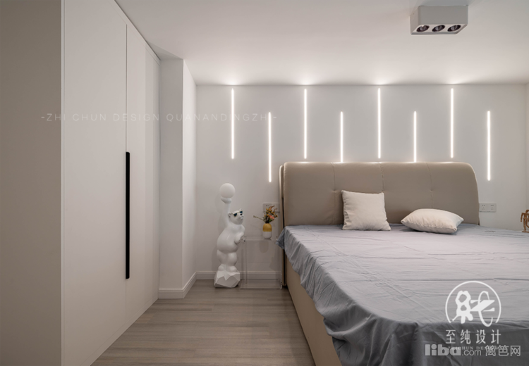 主卧以静谧、休息为主,将储物空间集中起来,释放更多活动区域,留白让整个空间变得开阔起来。