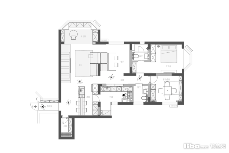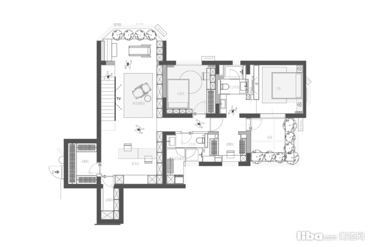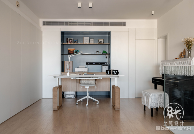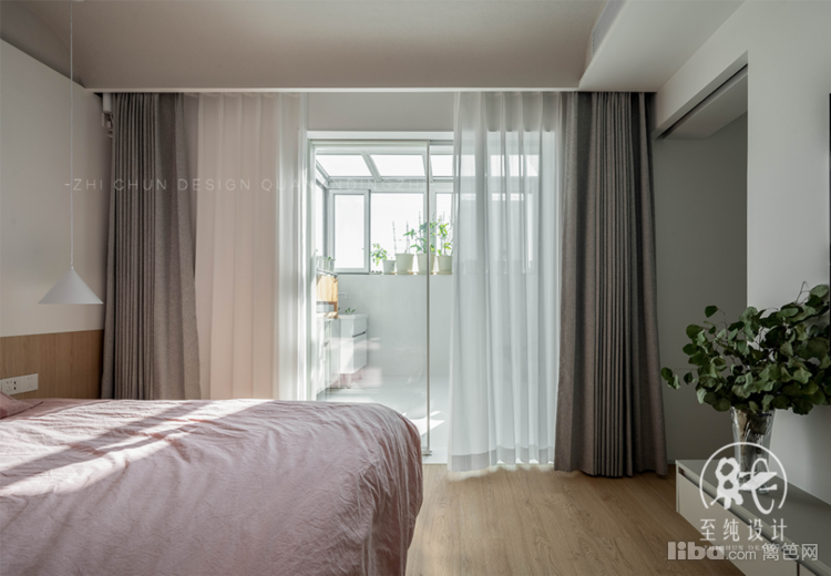主卧,保留最基础的睡前阅读、影视功能外,最大限度的保证睡眠质量。