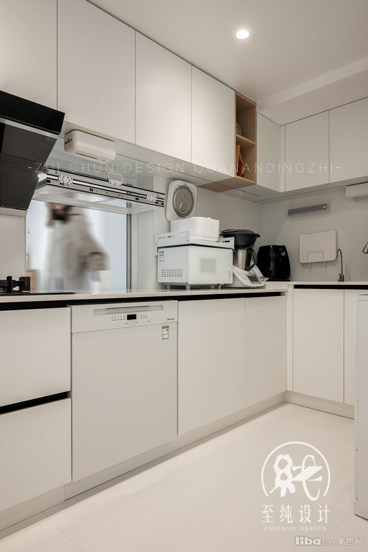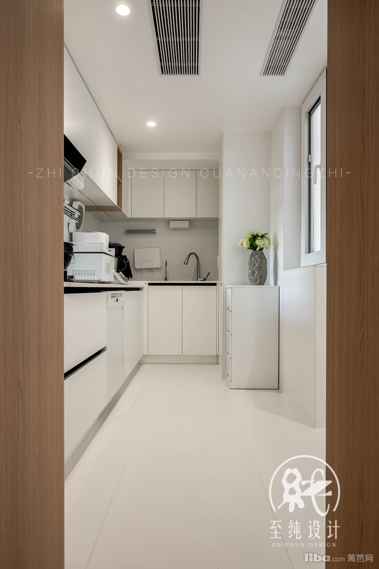 厨房隐形门的设计,从入户看西厨,视觉上一个整体性。