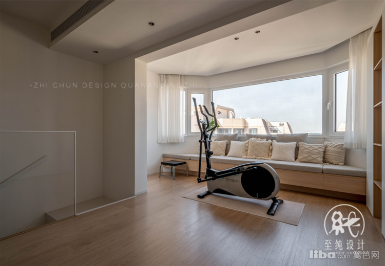 楼梯踏步上来,入目之处是开放式的多功能区,二楼作为夫妻和男孩的三人私享空间,多功能区集观影、学习、办公、健身为一体。