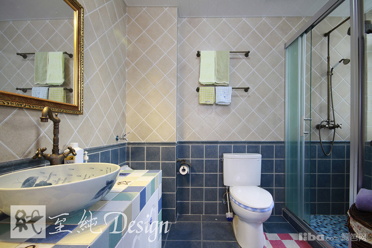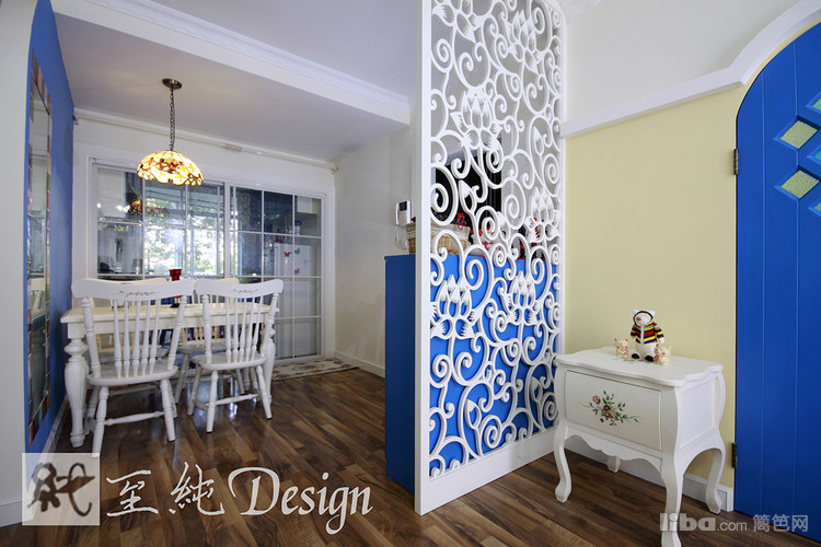 天蓝色造型墙、椭圆形拱门、镂空屏风设计等元素,无一例外的将地中海的主题尽情诠释出来,让二手房也拥有完美的新居效果。