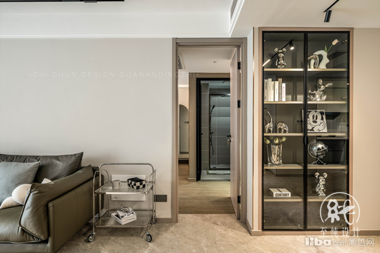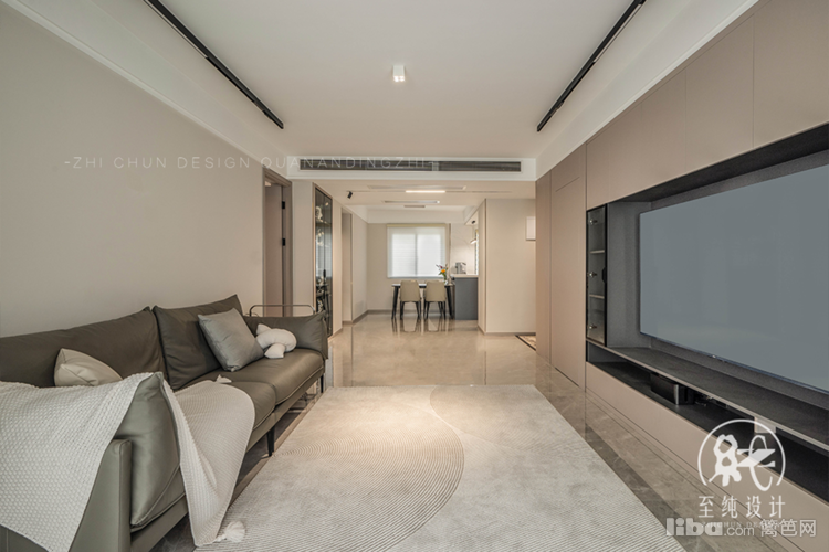 客厅以无主灯设计,结合皮质沙发,干净利落的同时让整个空间显得更有层次感。