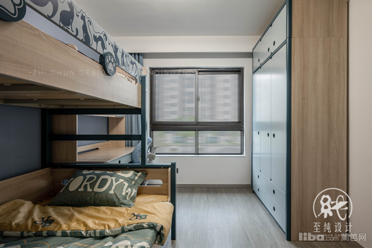 在求学时期,儿童房的家具以活动家具为主,以适应小朋友成长所需,保证空间具备灵活性。高低床的配备,长辈来了也便于照顾。