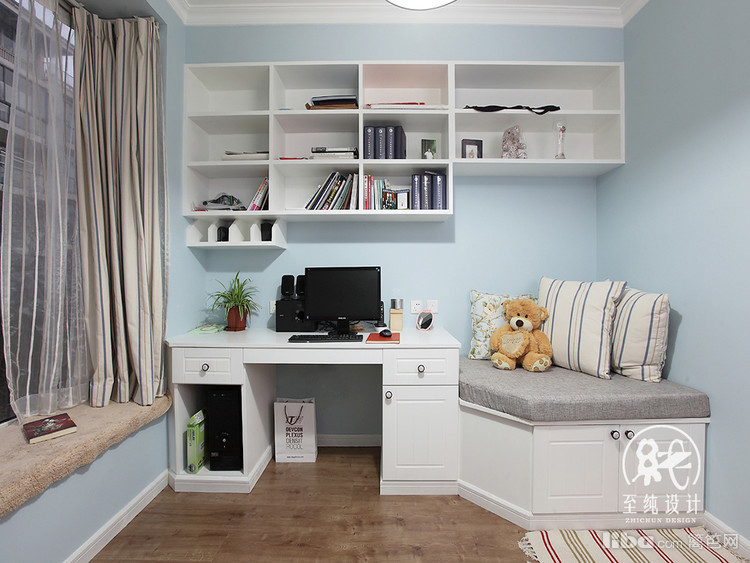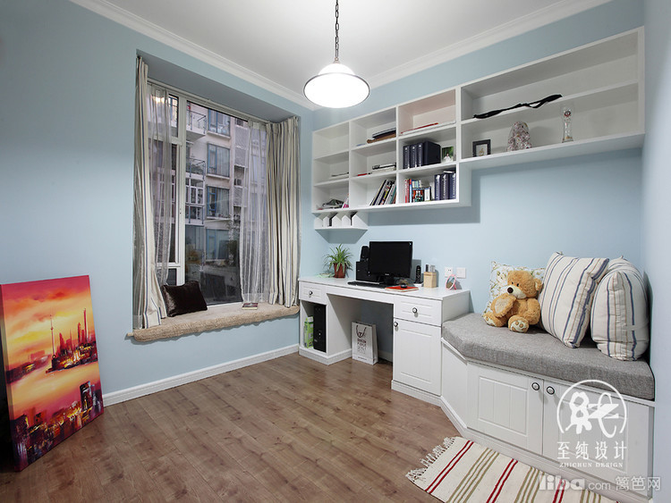 轻松美式。清清淡淡,精致的细节,合理的布局。兼顾业主一家人的需求和审美。