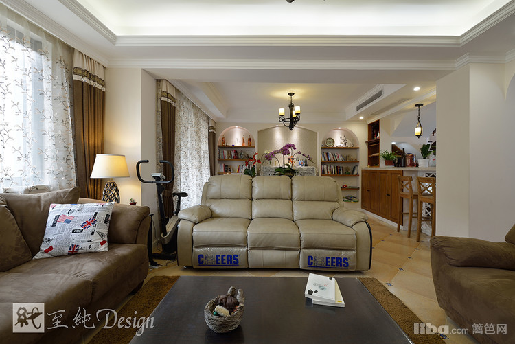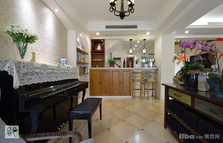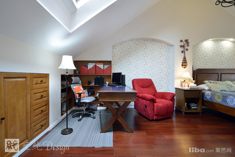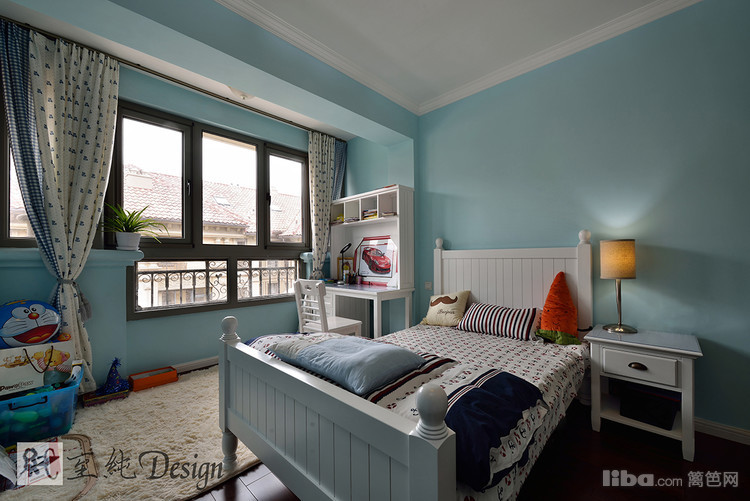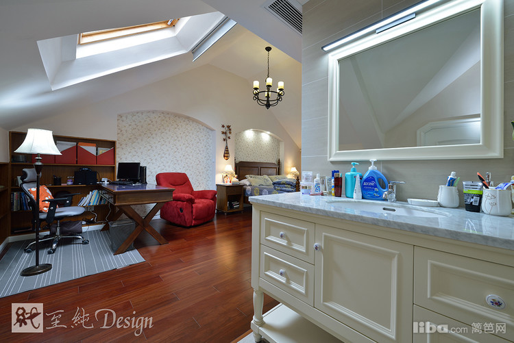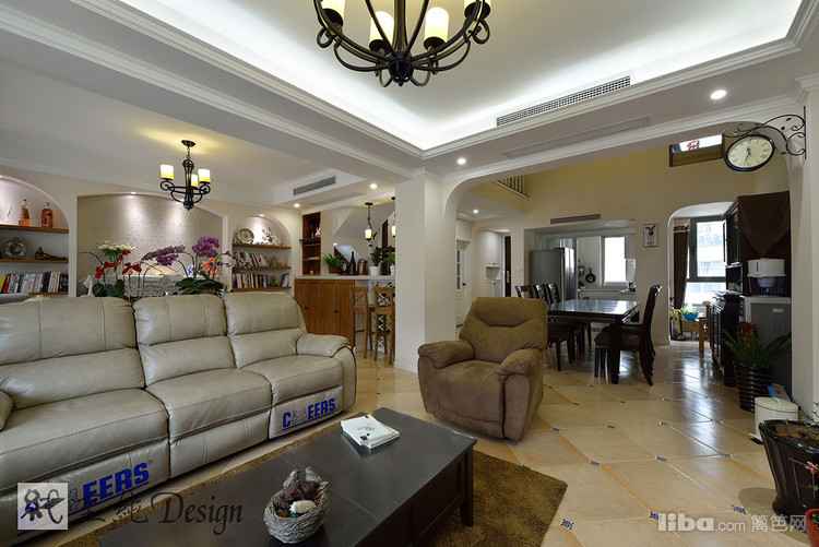 三代同堂,设计师在区域划分上按照居住性区分,楼下集合长辈及小朋友的居住、娱乐及一家人的吃用为主,楼上作为年轻夫妻的二人世界;在布局及色调上采取混搭,主要为实用、储物为主来选择。