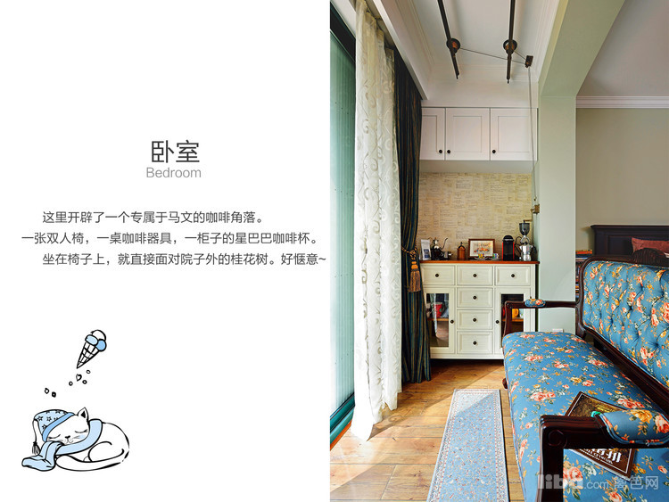 卧室嘛~现在是猫们最喜欢呆的所在。我们不到睡觉时间不进卧室。躺上床就着了,一觉睡到大天亮~