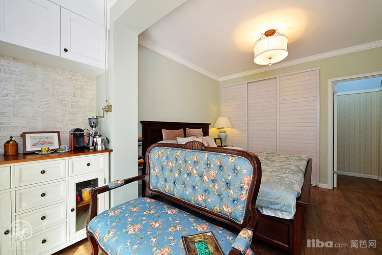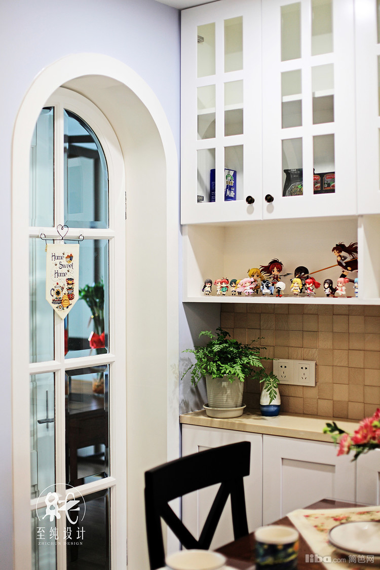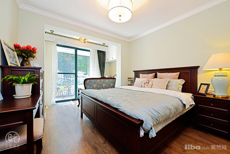 可推开的落地窗上挂着女主人喜爱的刺绣作品,美美哒~