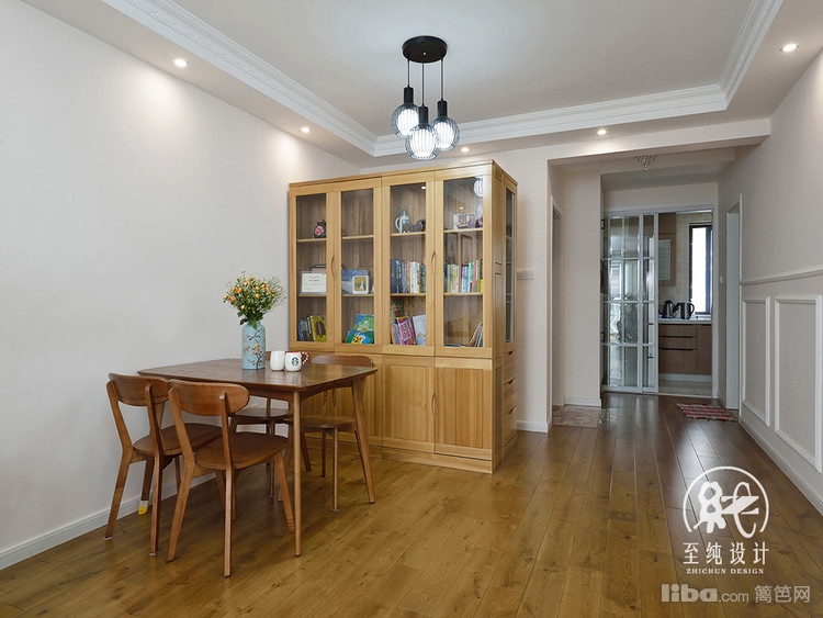 墙面颜色不是单调的白色,而是带点时尚灰。吊顶简单但是很时尚,看起来现代感十足。