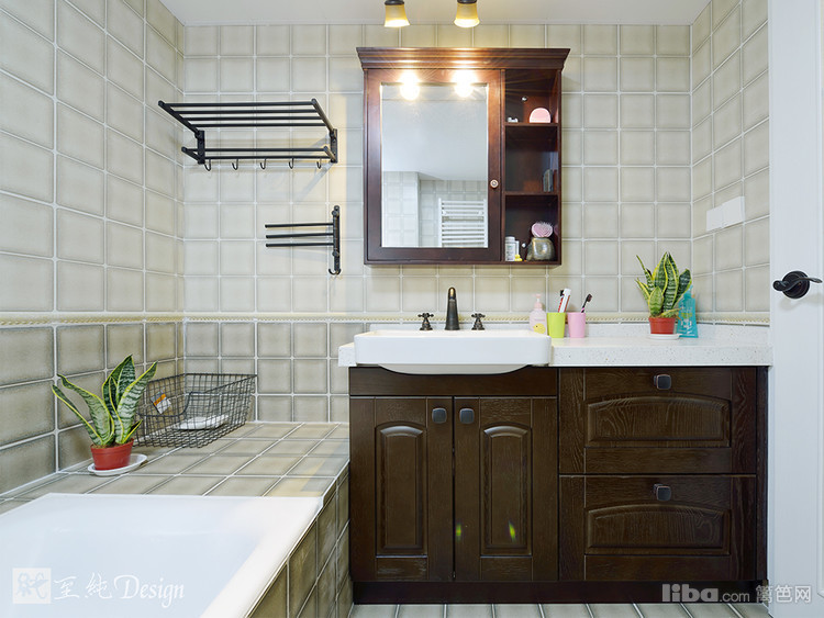 采用干湿分离的设计,方块状的洗漱背景墙,让个人有一种眼前一亮的感觉