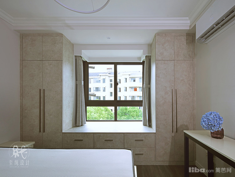 设计要新颖!主卧1米8的大床加一个飘窗,不要电视;进门改外开,而且进门左手要一个衣帽柜;