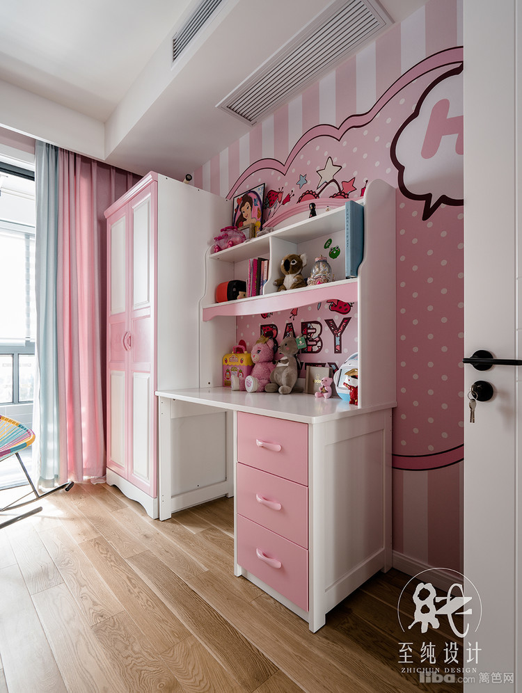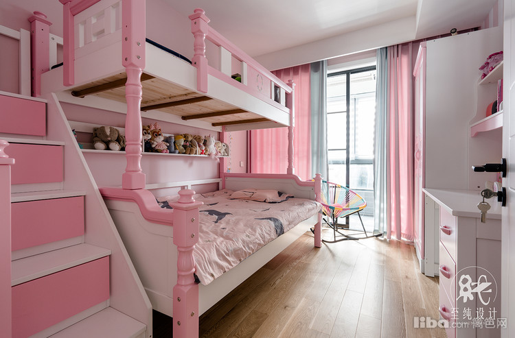 儿童房目前主要以大公主学习使用,采用了上下2层的儿童房,公主住楼下,对面作为平时学习的工作桌。