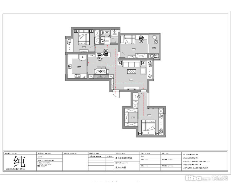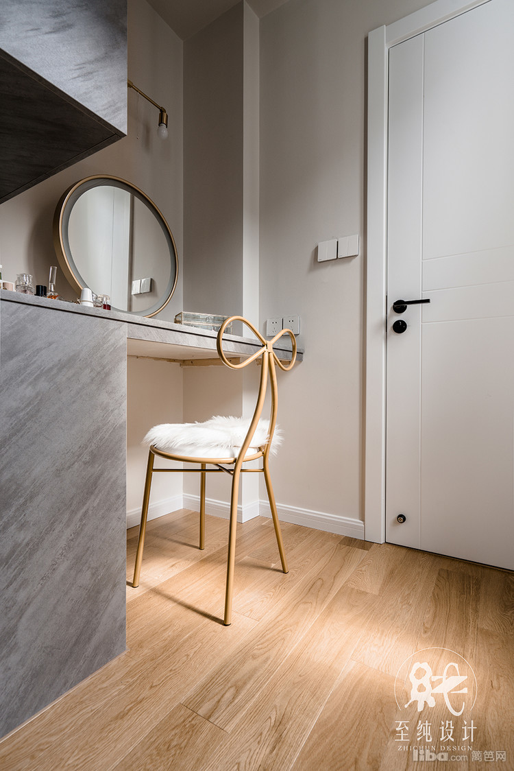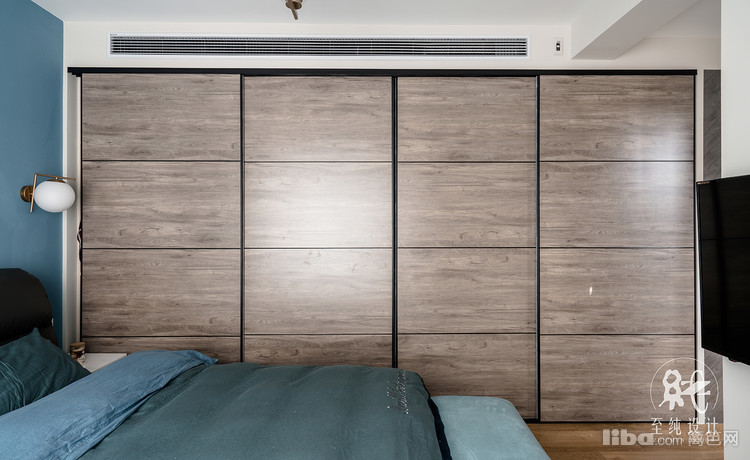 卧的原格局不规整,客户希望有衣帽间的设计。由于衣物实在太多,随之做了4联移门的衣帽间设计由此产生。