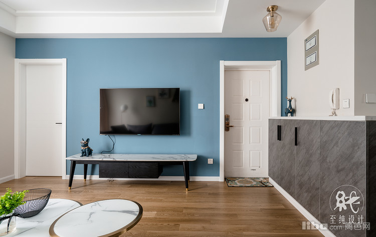 客厅电视背景墙由于一边是防盗门,一边是房门,故以简单的跳色为背景,简约而不失逼格。靠南边的飘窗就作为休闲区域,偶尔有朋友过来的时候沙发、飘窗上或倚或座的度过下午时光。
