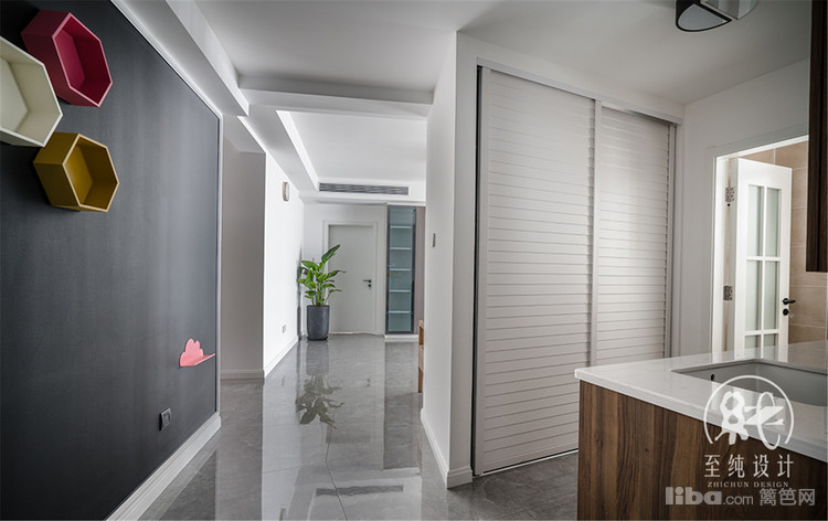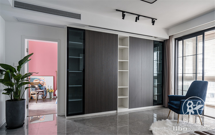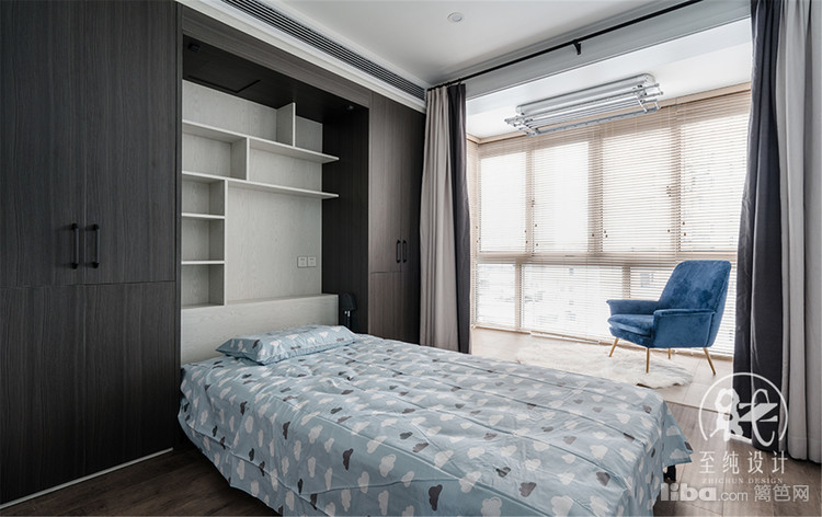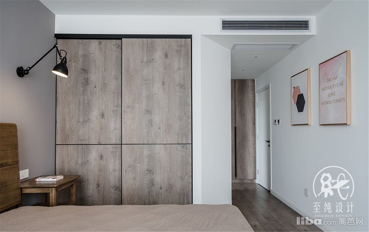 在设计之初其实有一个户型弊端,主卧与原次卧中间的过道空间其实浪费严重,这个空间如果单独划分空间又过于拥挤,会觉得压抑。借用过道,合并成新的局域