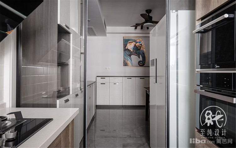 从厨房可以通向北阳台,所以厨房可操作的面积就小啦。现把厨房和北阳台的门封掉重新规划把厨房做了U字型的设计。
