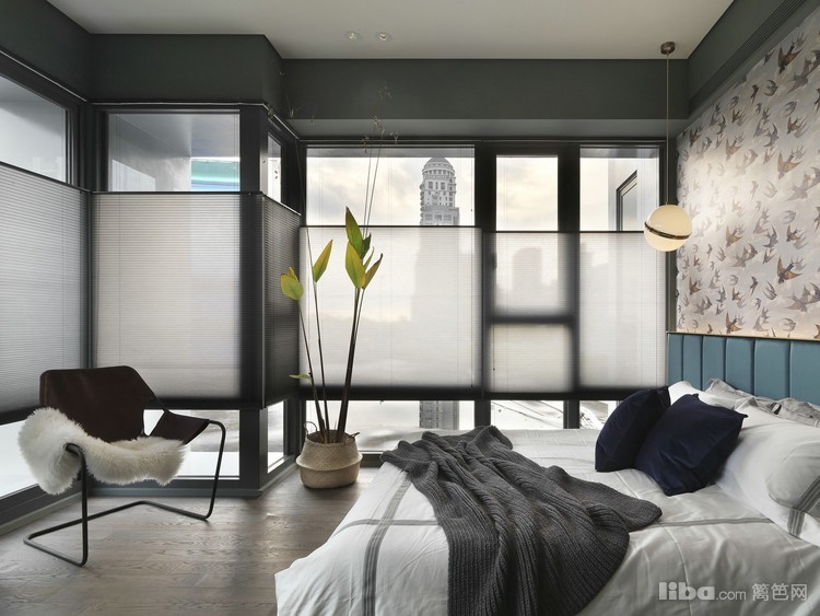 卧室采用现代简约的装修设计,采用半透明半磨砂玻璃的材质,设计感十足