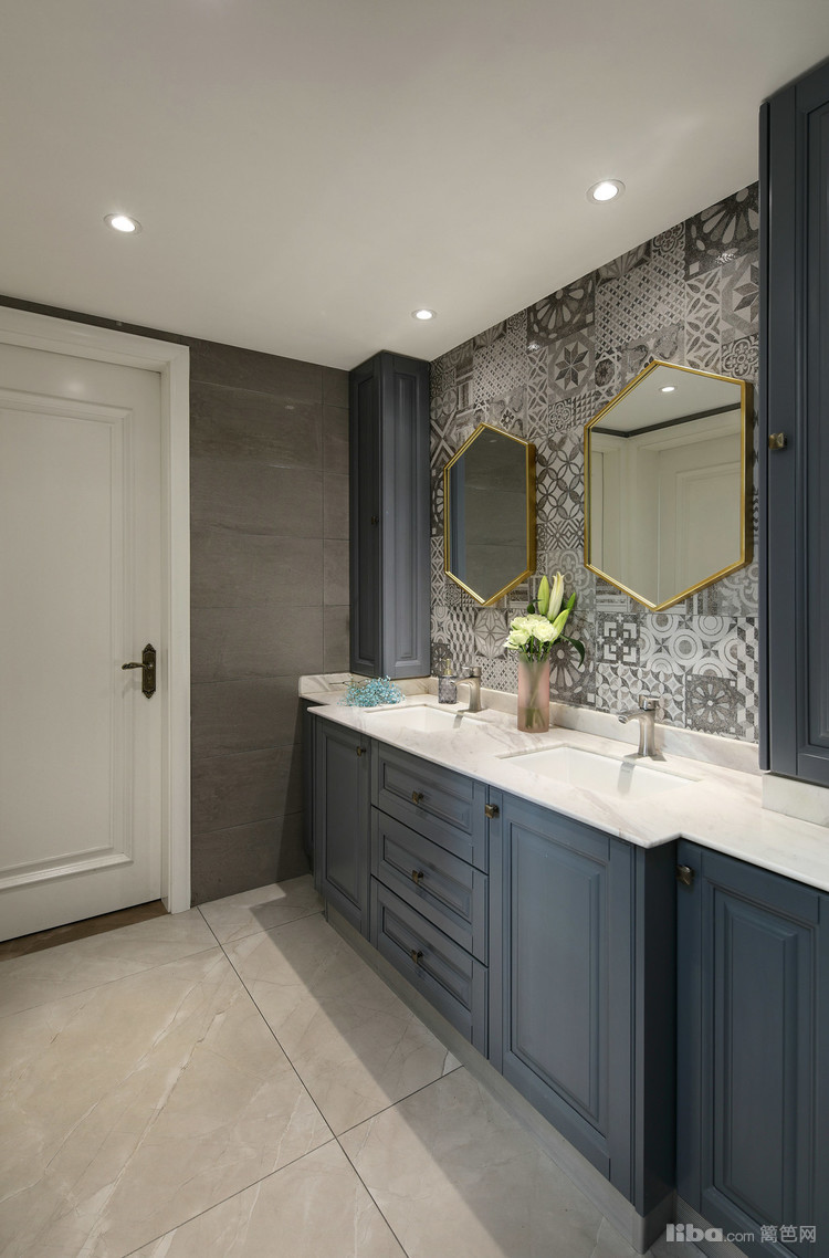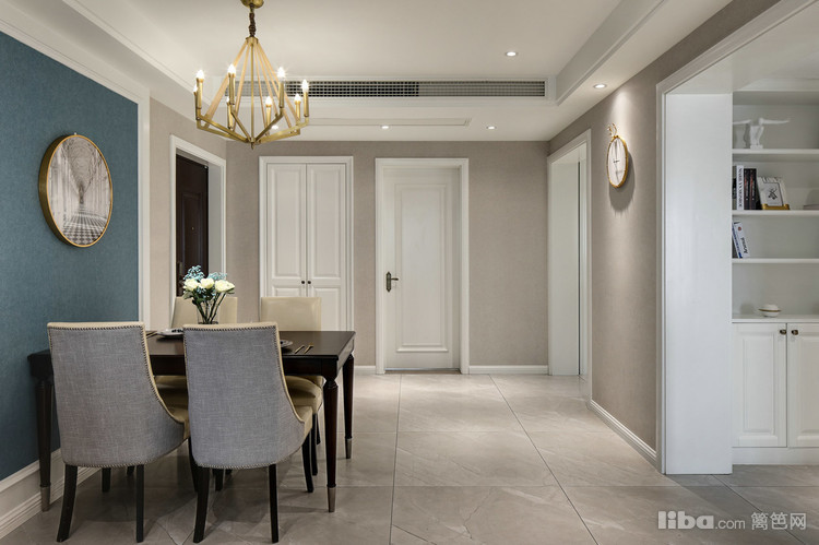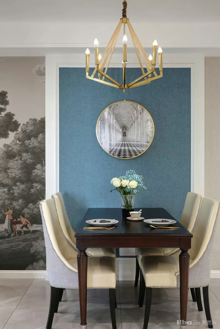 餐厅设计了立体感的设计造型,蓝色背景女主人很喜欢。每周买一次鲜花放置在餐桌上,尤爱百合,因为它不仅美,香,还不娇气。喜悦,源于对生活细微处的每一刻享受。