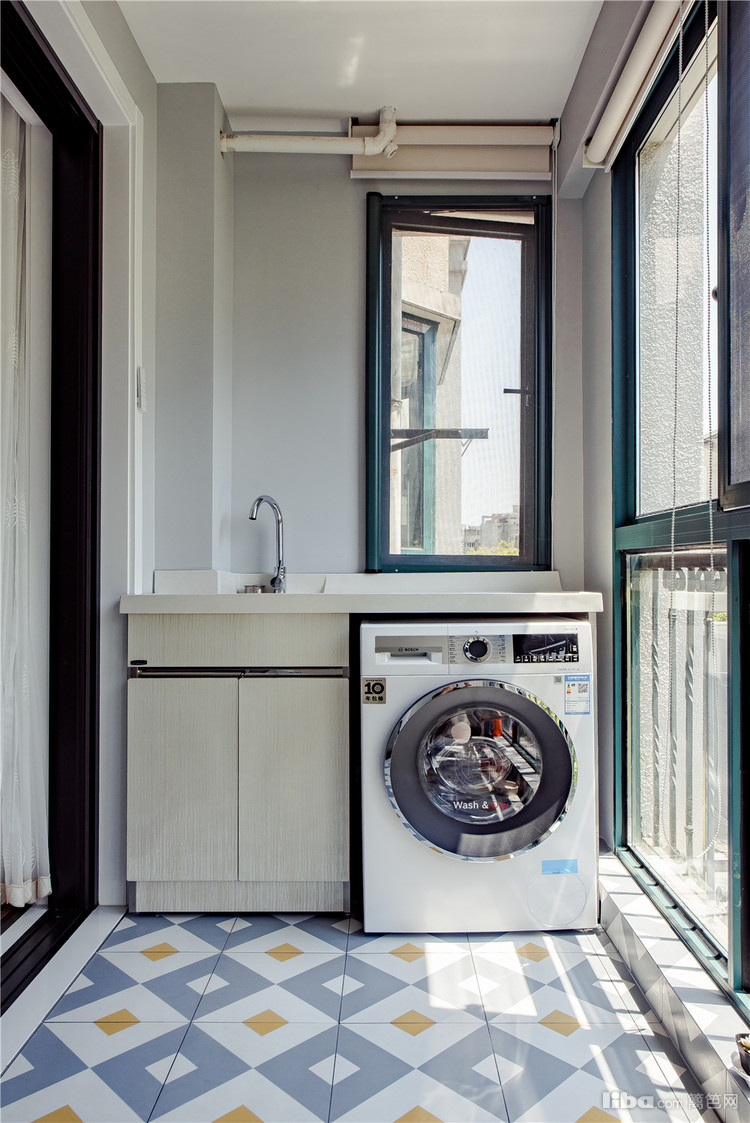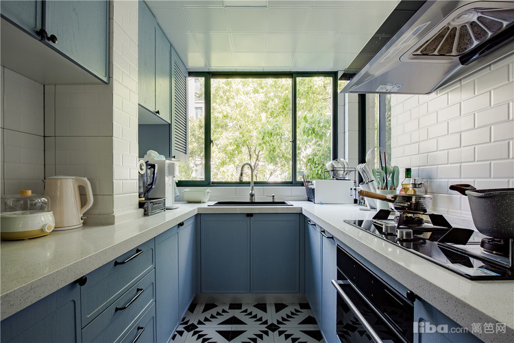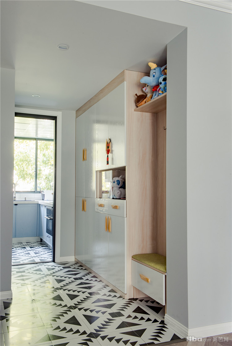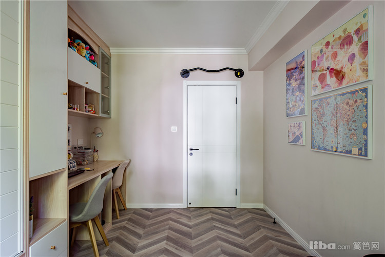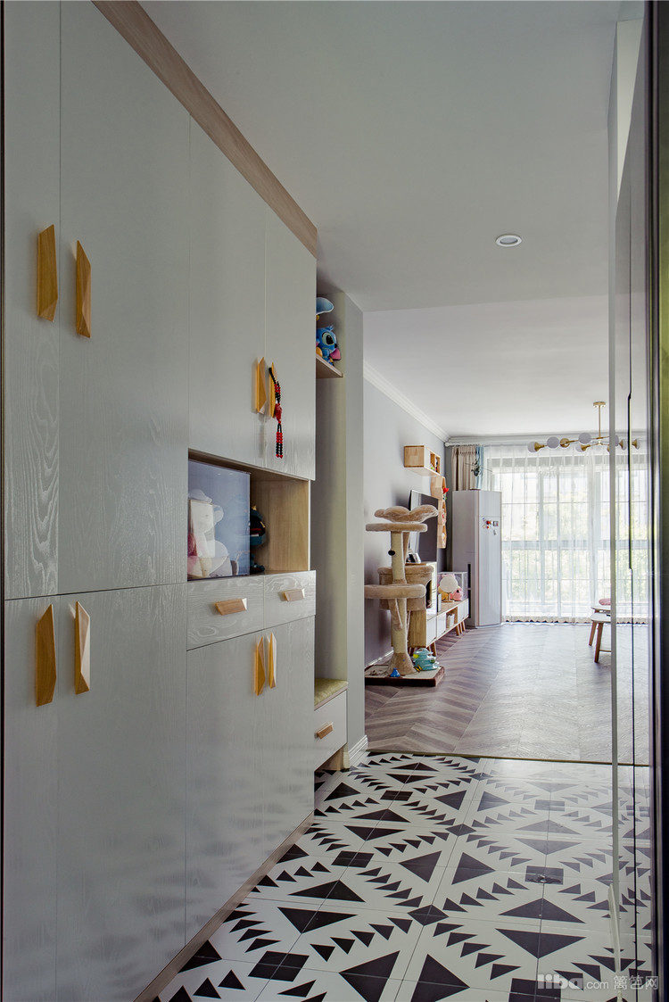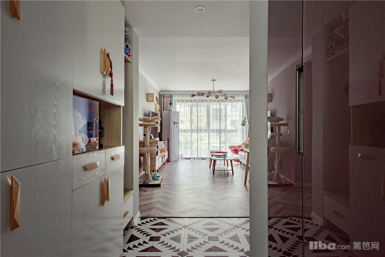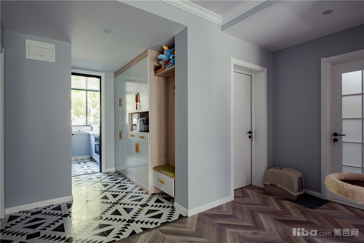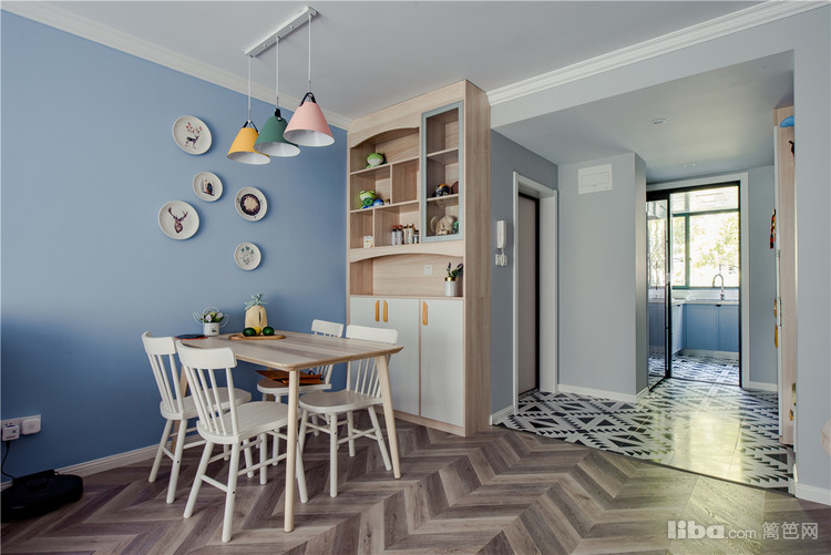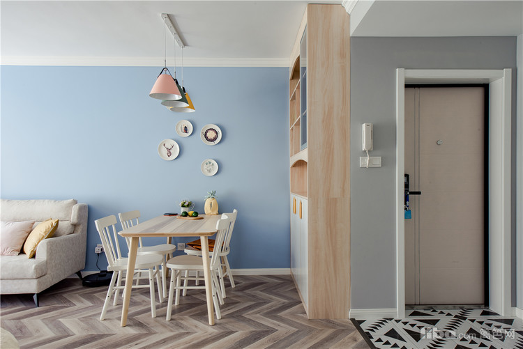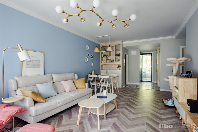 在风格上运用柔和色调小花砖凸显家居艺术美感,复古人字格地板选择凸显格调