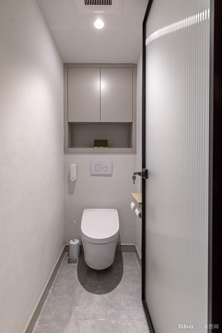 独立马桶间选用了悬挂式马桶,增加了视觉空间感,后方设计了储物柜
