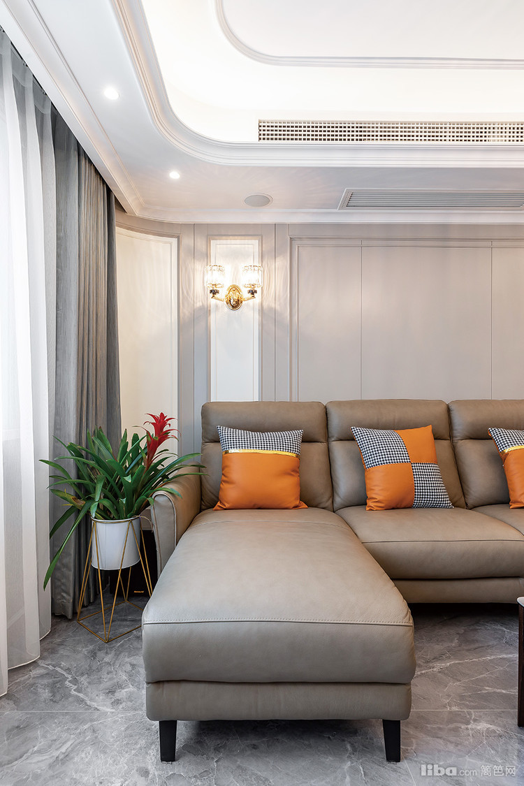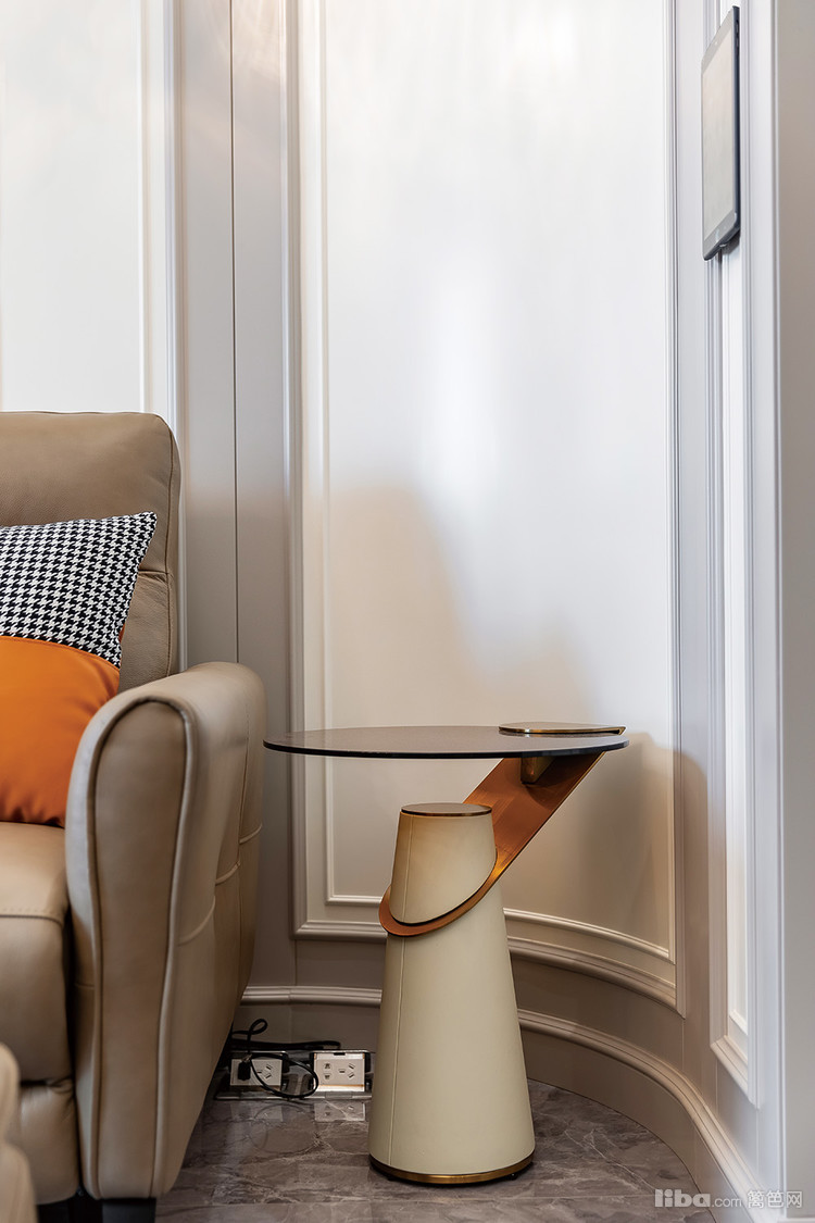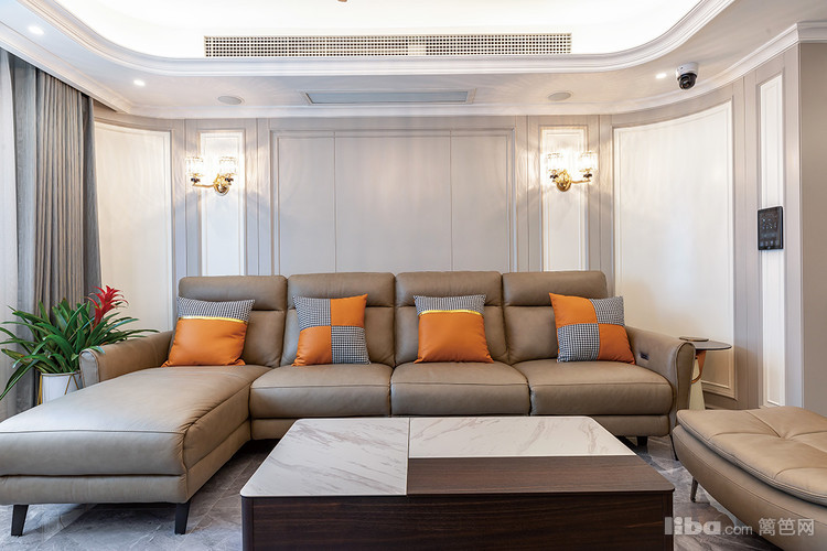 沙发后的墙体用了非常精致的护墙板做了包裹