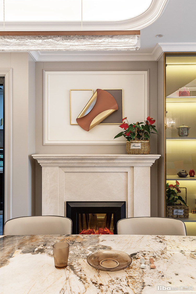 餐厅区域还做了壁炉装饰设计,女业主特别喜欢