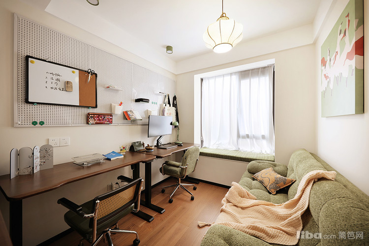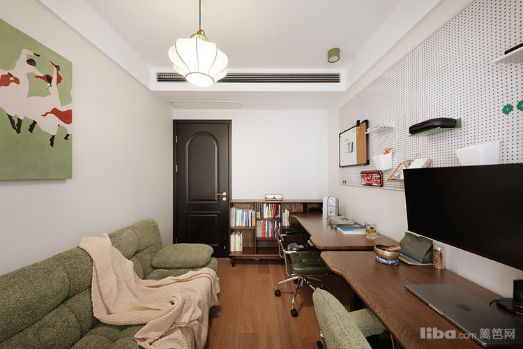 要设计一个书房,喜欢中古风的质感但是要简约一些,整体配色明亮简单
