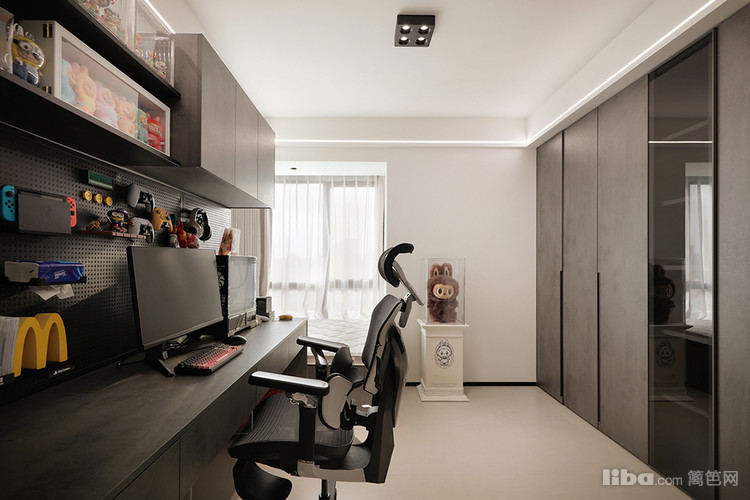 喜欢简约大气的效果,需要一个双人位的电脑办公区,要多多的储物空间
