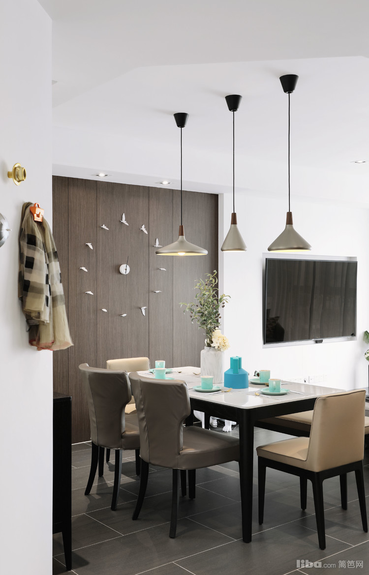 当我们步入餐厅处,可以感受到空间的流畅感,质感家具与装饰画为居室空间增添了光线感与活泼感,让家更具有温度。
