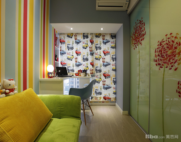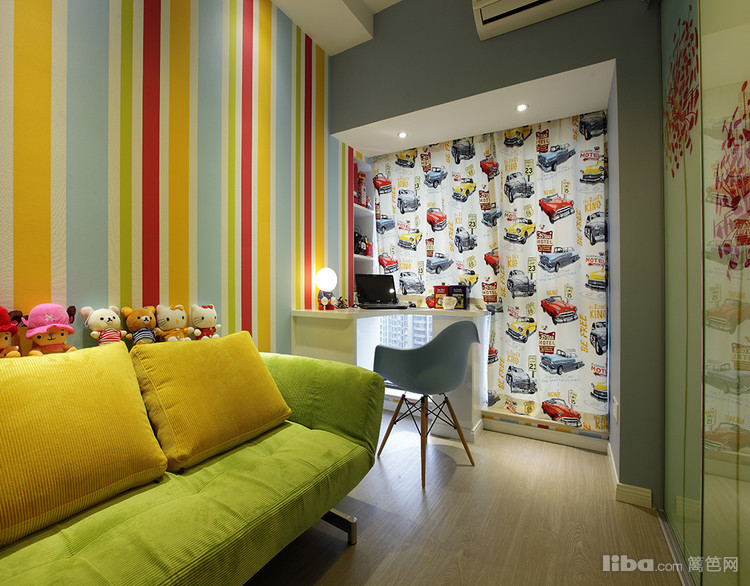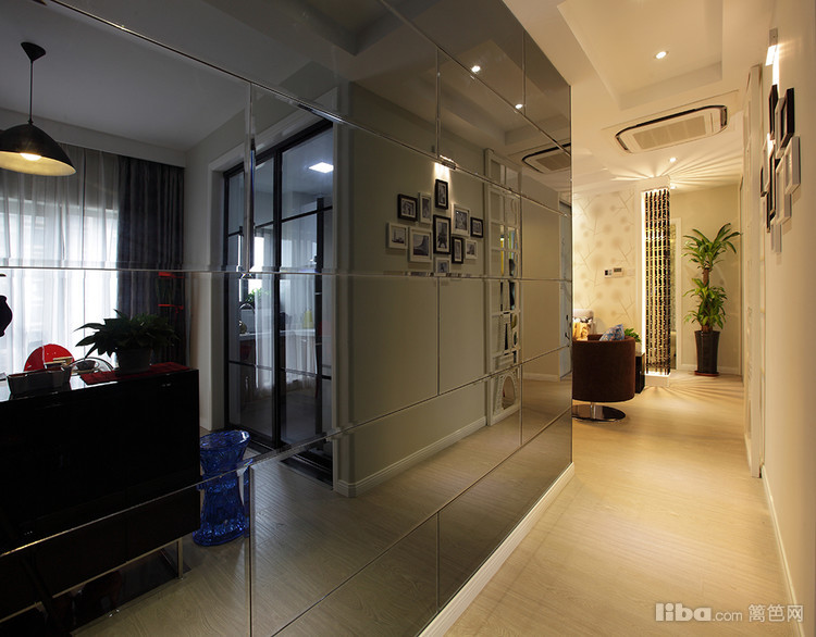 狭长的走廊和休息室是设计师另一大展身手的空间,镜面材质的运用让空间不再显得拥挤,反而有种通透明亮之感,休息室运用个性鲜明的色彩营造出轻松活泼的氛围。