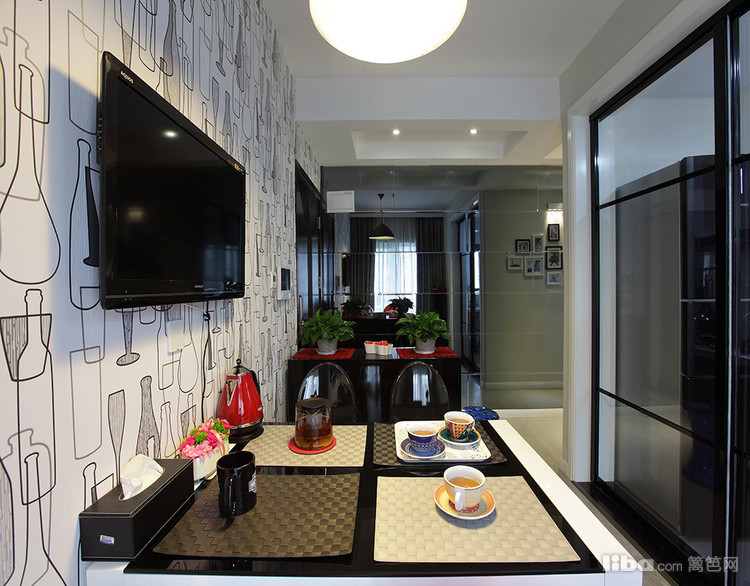 餐厅几何图案的电视背景墙充满童趣,让人进餐之余轻松拥有好心情~