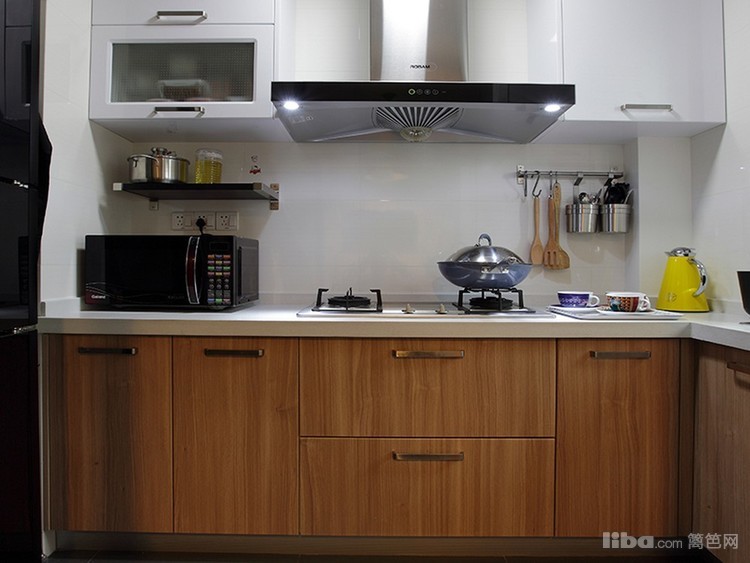 厨房与餐厅水平分布,尽量利用空间而不显拥挤,镜面材质的运用增强了空间通透感,同时提升空间整体的时尚感。