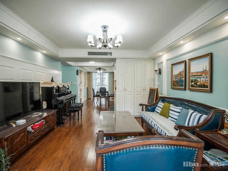 在分区上保证了各个空间的相对独立性的同时,通过合理搭配整体的和谐美,让美式风不再沉重呆板,而是以一种清新自然的格调带给居住者家的温暖与惬意。