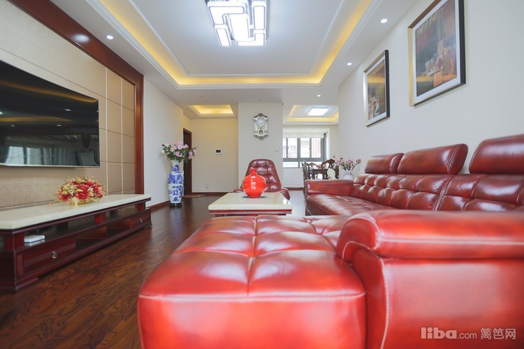 跳脱一成不变的呆板沉闷,红色皮质沙发為居家空间注入更多活力色彩,特意加入多元的普普风貌与材质搭配,营造出空间繽纷、亮眼的视觉效果,这样的客厅既简约也符合美式一贯的休闲姿态。