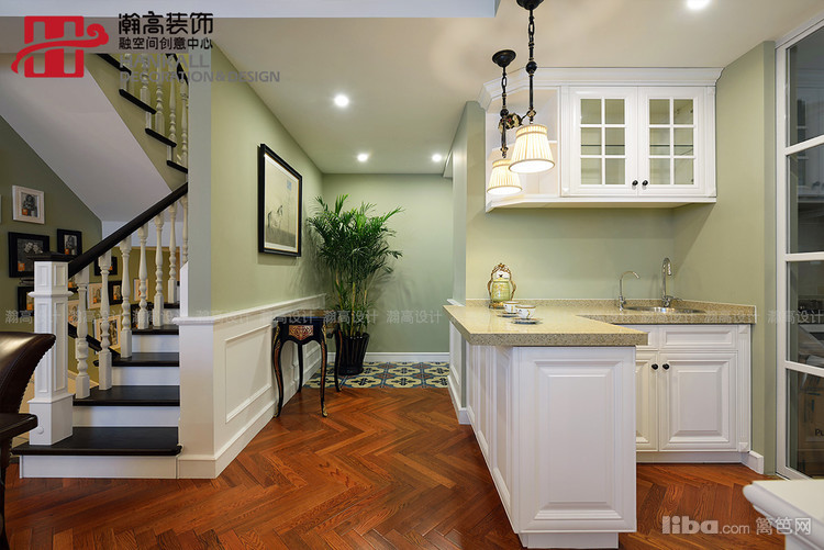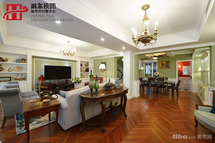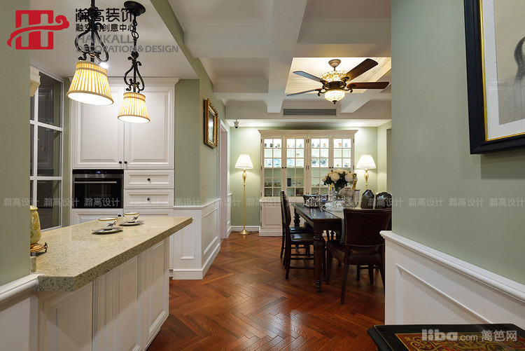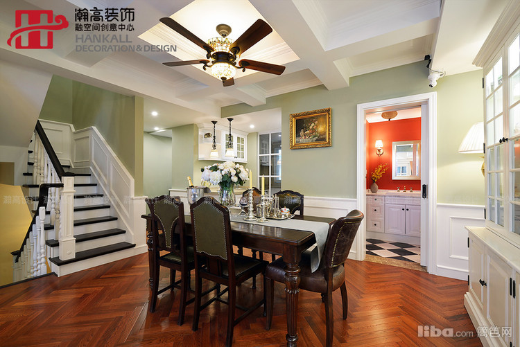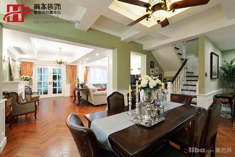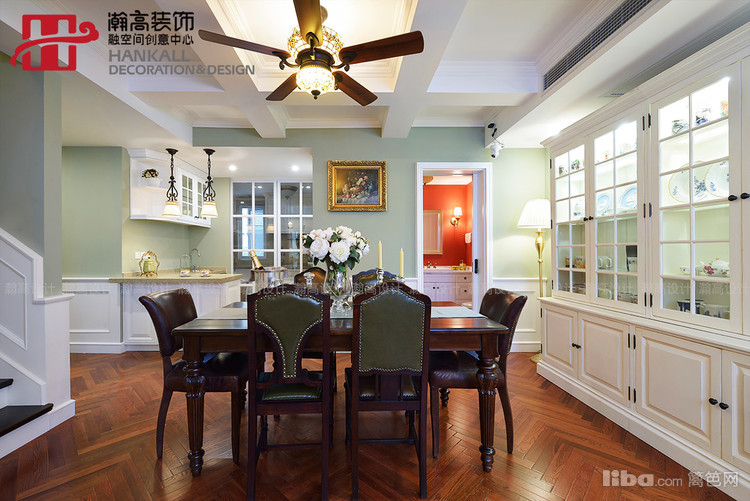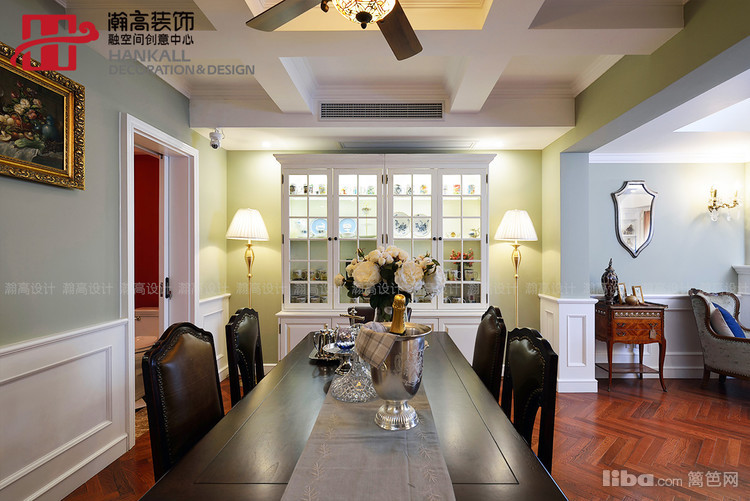 美式线条的组合美感,在餐厅的空间里体现的淋漓尽致